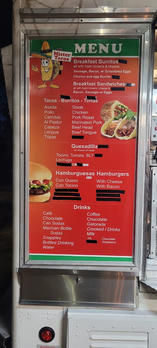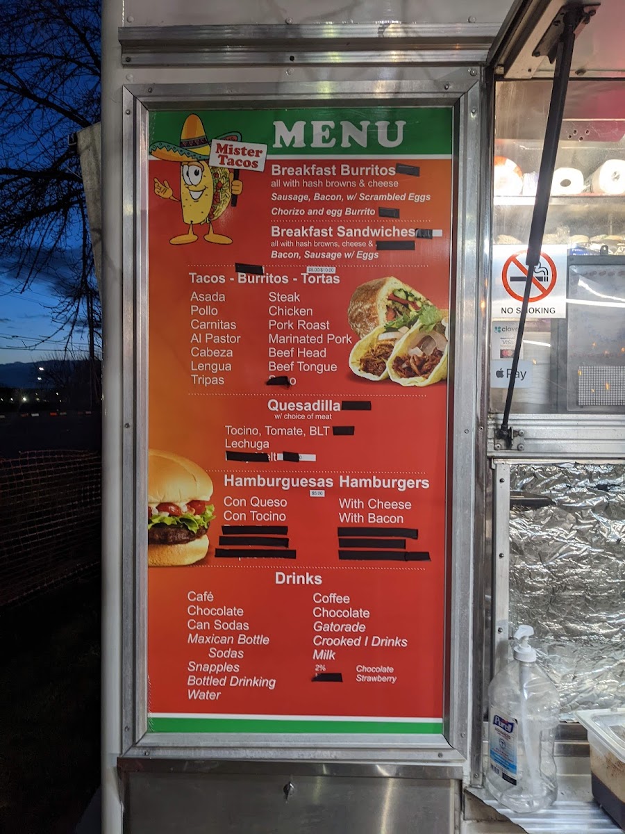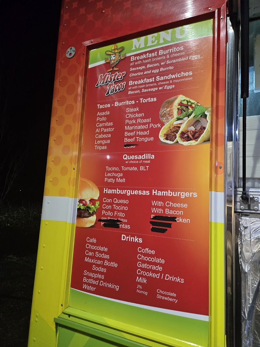 Mister Tacos LLC Menu